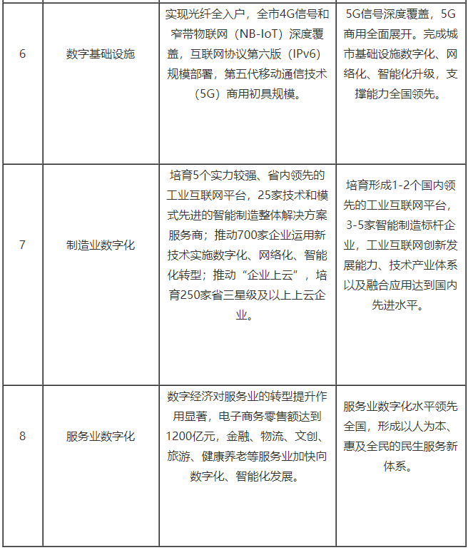 4. 培育數字經濟龍頭骨干企業。鼓勵各地區結合自身特色優勢,集中資源引進一批數字經濟龍頭企業,促進一批重大項目落地。加強培育一批本土龍頭骨干企業,重點支持朗新科技、卓易信息、華云數據、帆軟軟件等企業做大做強,提升數字經濟競爭力和影響力。加大數字經濟骨干企業上市培育力度,重點支持一批創新能力強、市場前景好、發展潛力大的企業在多層次資本市場上市或掛牌。鼓勵數字經濟領域現有總部企業做大做強,發揮支撐和引領作用,打造一批處于國內領先地位的數字經濟總部企業。