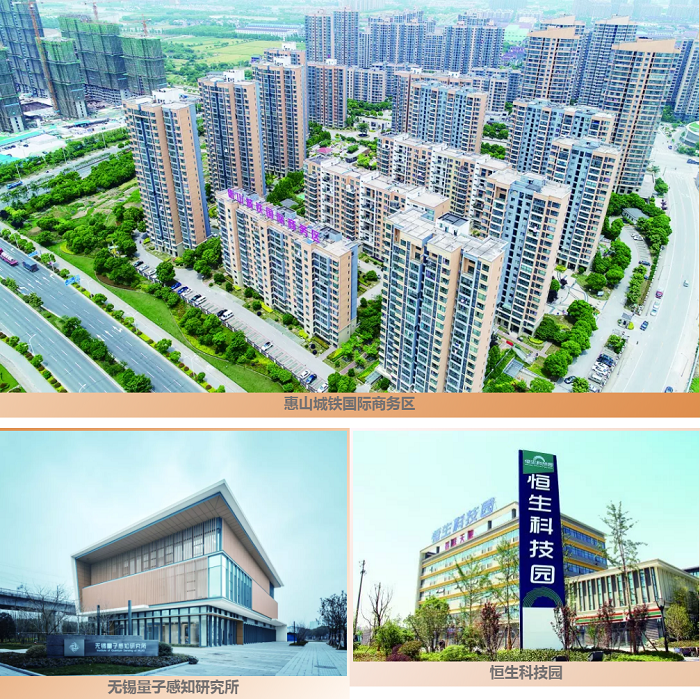 無錫惠山區搶抓機遇,圍繞城際鐵路惠山站,以站區樞紐為蕊,以立體步道為蔓,產業、創新、生態、商貿、總部5大功能組團綻放,全力打造“陌上花開,長三角最美車站”?;萆絽^依托站區的產業、空間資源,規劃建設東部智能制造產業區、中部轉型升級產業區、南部科技創新產業區和西部健康休閑產業區四大產業片區。著力打造機械裝備、紡織印染、智能家居、量子信息、膠囊飲品、資源循環利用六個產業集群,以產業集聚構建起樞紐型、總部型、智能型的產業經濟體系,恒生科技園、恒生園中園、無錫量子感知產業園、智能制造園等一批科創產業園區落戶惠山,加快推進惠山區深度融入長三角一體化發展。