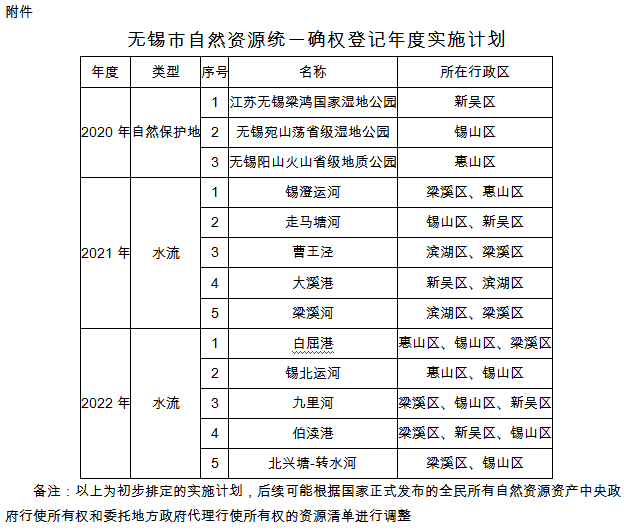 附件:無(wú)錫市自然資源統(tǒng)一確權(quán)登記年度實(shí)施計(jì)劃