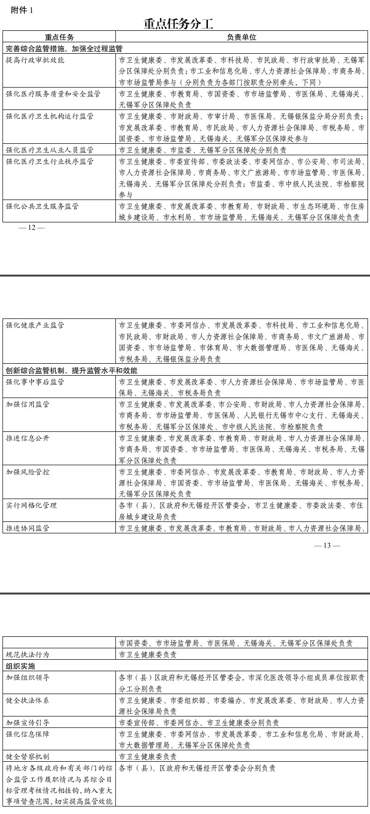 無錫市改革完善醫療衛生行業綜合監管制度實施方案