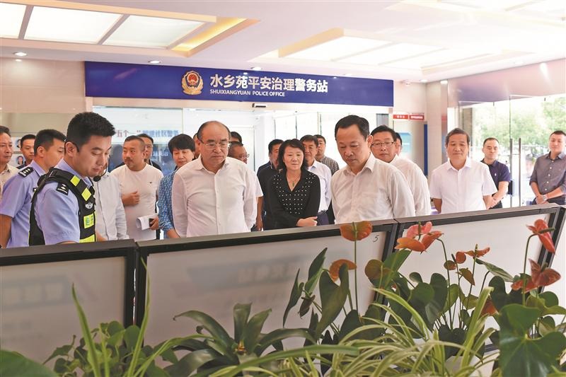 助力市域社會治理現(xiàn)代化。圖為市政協(xié)黨外委員實地察看經(jīng)開區(qū)水鄉(xiāng)苑社區(qū)警網(wǎng)融合聯(lián)動指揮中心。