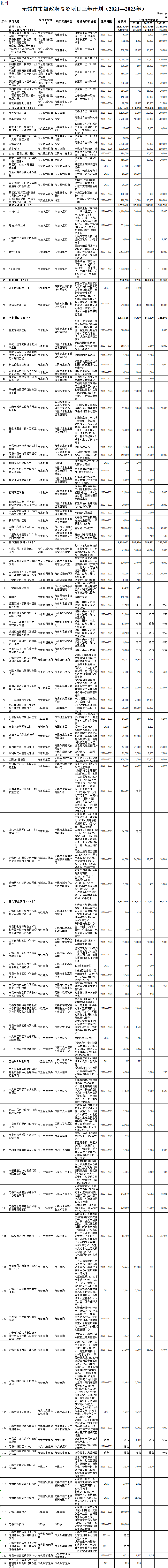 附件: 1.無錫市市級政府投資項目三年計劃( 2021—2023年)