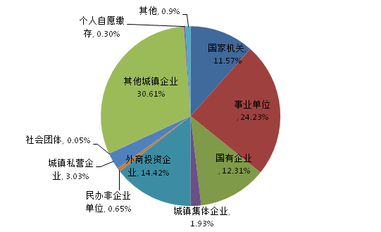 2021年三季度實繳職工數按不同性質單位分類占比圖