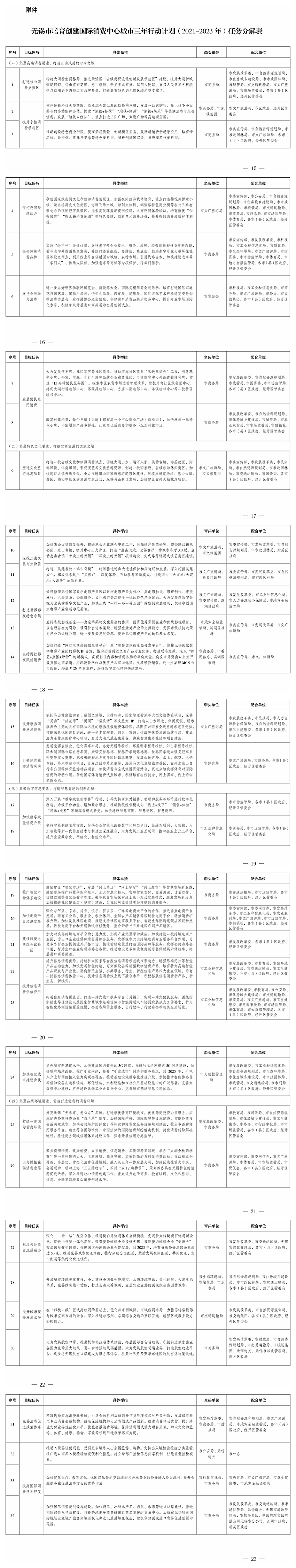 附件:無錫市培育創建國際消費中心城市三年行動計劃(2021-2023年)任務分解表