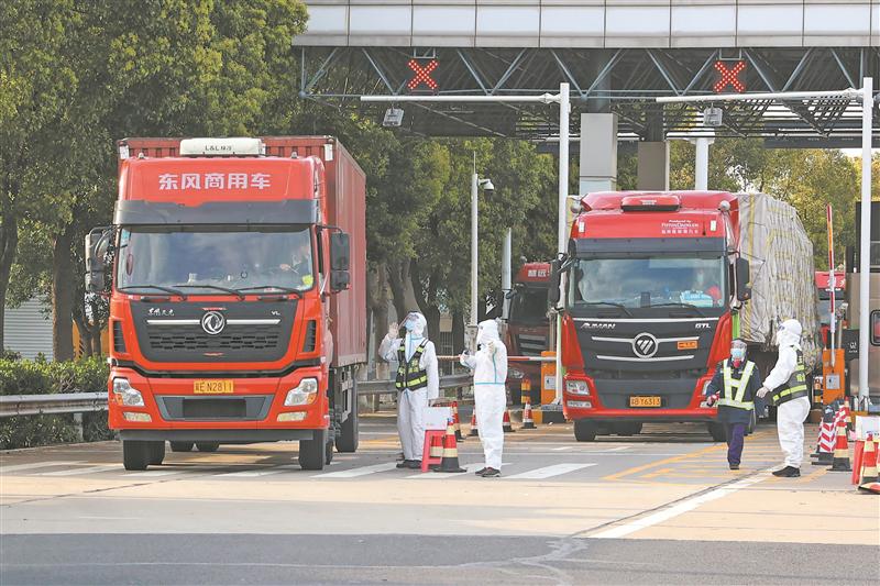 未提前申領《上海往來物資運輸車輛電子通行證》、符合入錫條件的貨運車輛,在入錫時需申報相關信息,并由本地收貨企業或托運企業到查驗點登記信息后“點對點”接回貨運車輛,確保途中不逗留、人員不下車。(徐兢輝)