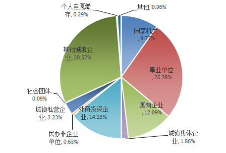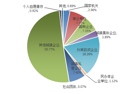 從繳存主體看,以非公群體為主,繳存人數占一季度實繳職工數的79.43%,其中城鎮私營企業及其他城鎮企業職工繳存占比更是高達58.17%。從繳存職工月繳存基數和月繳存額看,繳存基數低于上年平均工資0.6倍以下職工占當季實繳職工的62.61%,月繳存額低于1000元的職工占當季實繳職工的61.76%。具體繳存結構如下: