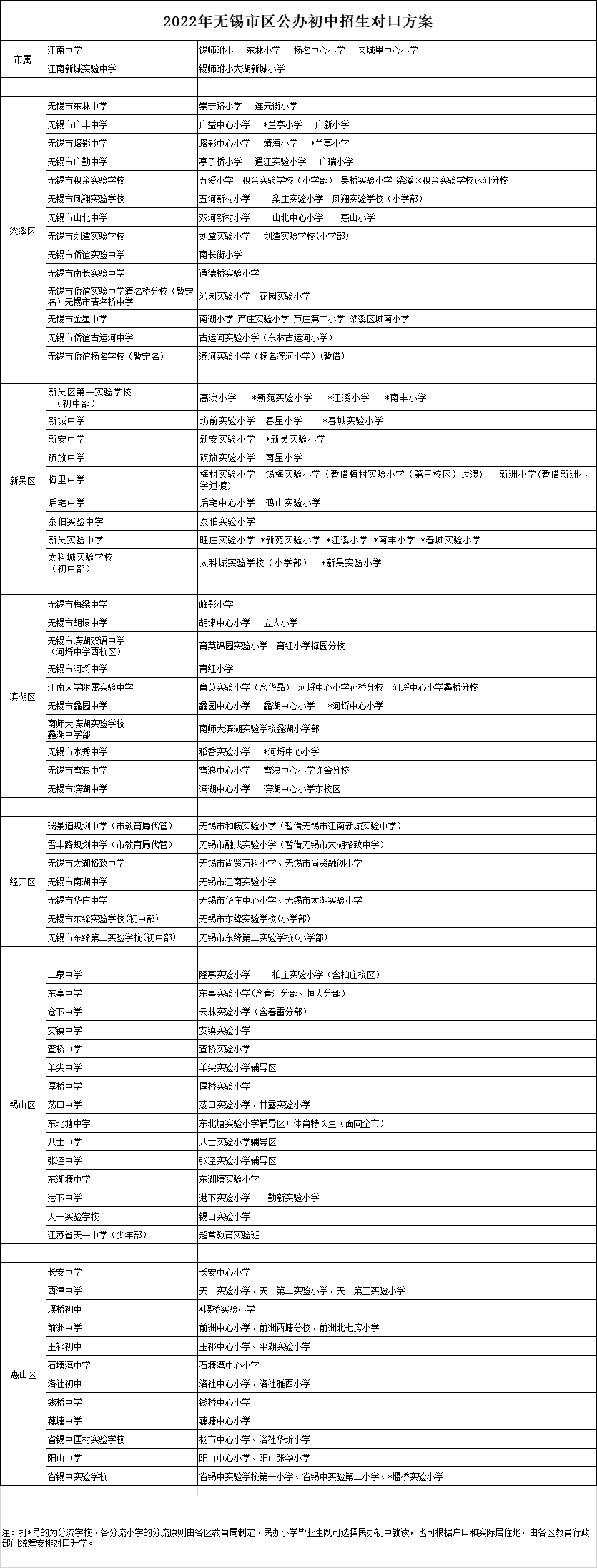 2022年無錫市區公辦初中招生對口方案