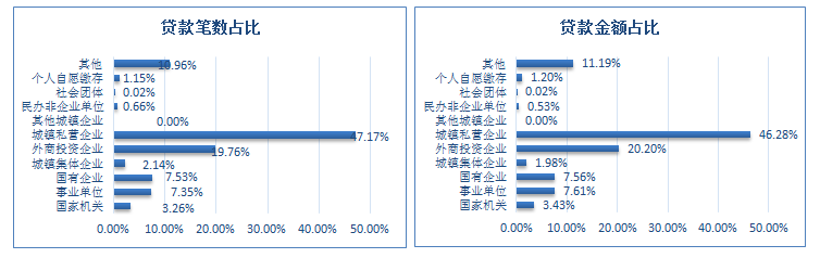 2022年三季度職工貸款筆數及貸款金額按單位性質分類占比圖