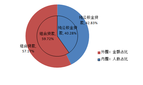 從貸款群體來看,剛需與改善型住房需求職工分別占貸款總人數的32.68%和59.67%。從單位性質來看,以城鎮私營企業及其他城鎮企業職工為主,貸款筆數和貸款金額占比分別為55.85%、54.79%。從購房面積來看,職工貸款購買小于90㎡、90-120㎡房屋居多,分別占貸款總人數的32.68%、36.64%。從主借人繳存基數來看,貸款主要以中、低收入職工為主,分別占貸款總人數的32.71%、65.12%。從貸款類型來看,純公積金貸款和組合貸款占比分別為40.28%、59.72%。具體放貸結構如下: