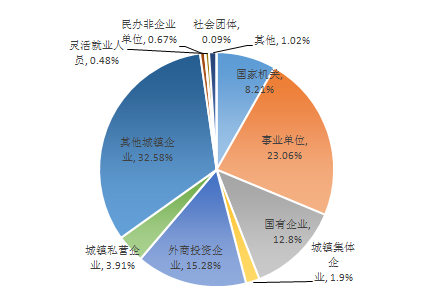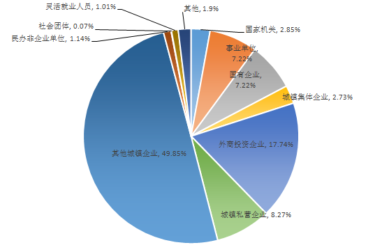 從繳存主體看,以非公群體為主,繳存人數占一季度實繳職工數的79.98%,其中其他城鎮企業職工繳存占比最高。具體繳存結構如下: