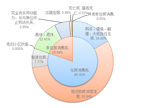 2023年一季度,住房消費類提取金額為48.4億元,環比增長5.29%,占四季度提取額的80.32%。其中,購房購買、建造、翻建、大修自住住房和還貸提取占重要位置,提取金額分別10億元、33.71億元,占四季度提取額的16.6%、55.94%。具體提取結構如下: