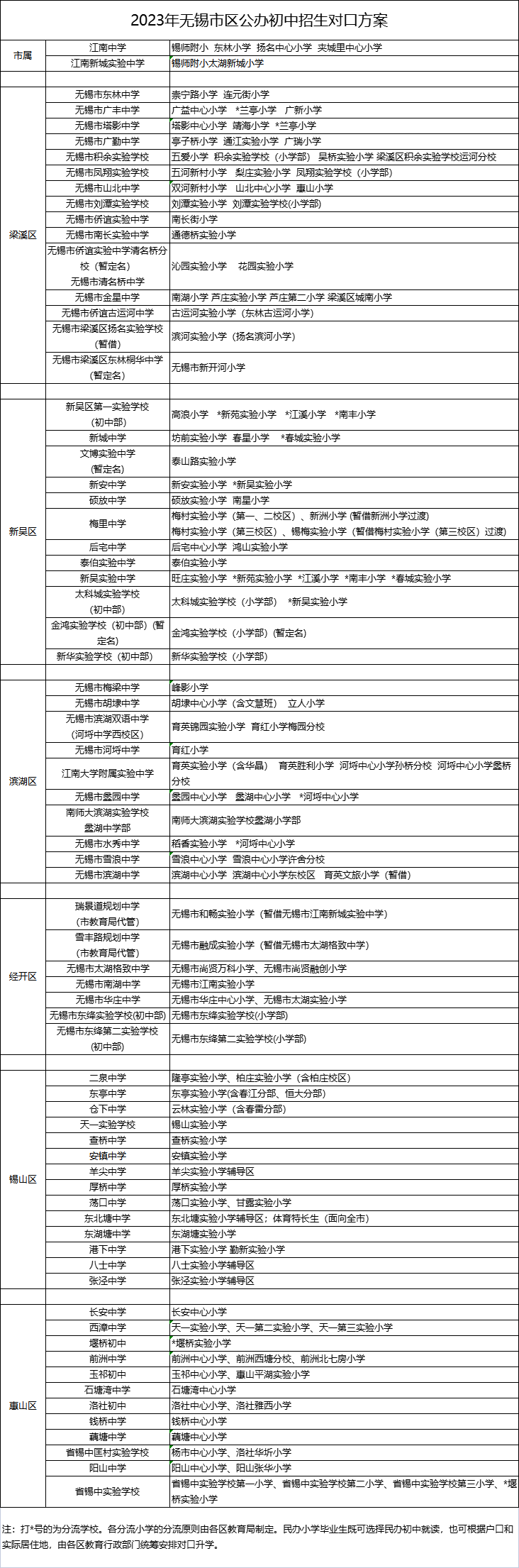 內容概述 2023年無錫市區公辦初中招生對口方案