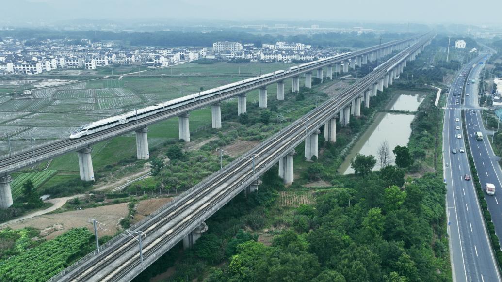 6月4日,從安徽省黃山市開往浙江省杭州市的列車從黃山北站駛出。近年來,安徽省黃山市和浙江省杭州市借助長三角一體化發(fā)展的東風(fēng),兩地在文旅領(lǐng)域保持緊密合作。 新華社 發(fā)(樊成柱 攝)