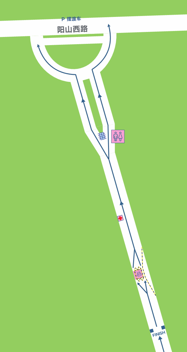 注意:如果您在比賽途中已經被關門,請乘坐收容車回到起終點,以免錯過賽后的返程擺渡車。