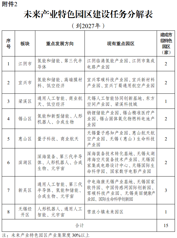 2.未來產業特色園區建設任務分解表(到2027年)