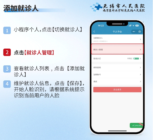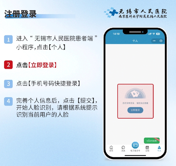 微信搜索并打開“無錫市人民醫(yī)院患者端”小程序,或者掃描下方二維碼進(jìn)入小程序。