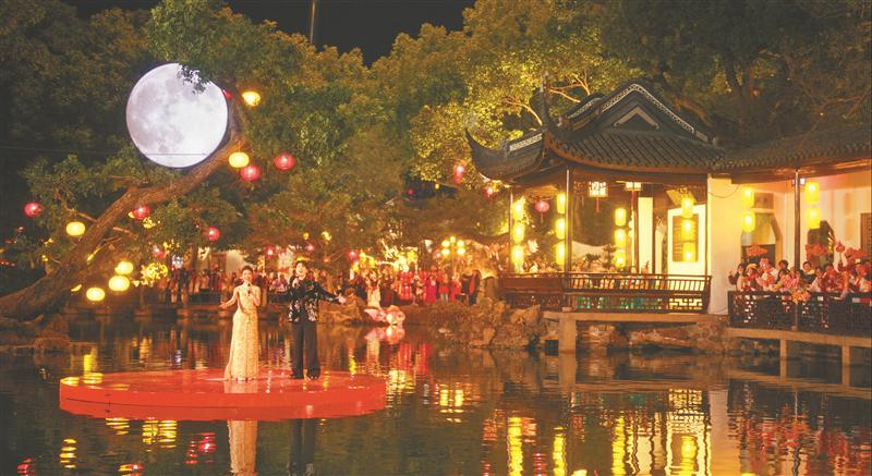 對于戲曲演員而言,園林實景演出已非新鮮事。但對于歌劇演員而言,在中國古典園林中演唱,卻是新的體驗。“《相思》源于一首經典老歌,為了契合元宵佳節的氛圍,我們做了改編,希望能給大家帶來不一樣的體驗。”這是蔡程昱第三次來無錫,他非常喜歡無錫,喜歡這里古色古香的建筑,喜歡江南園林的小巧精致。