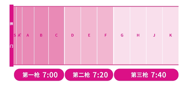 2025錫馬共設12個分區,所有選手將分為3槍起跑,出發時間依次為3月23日早晨7:00、7:20和7:40。