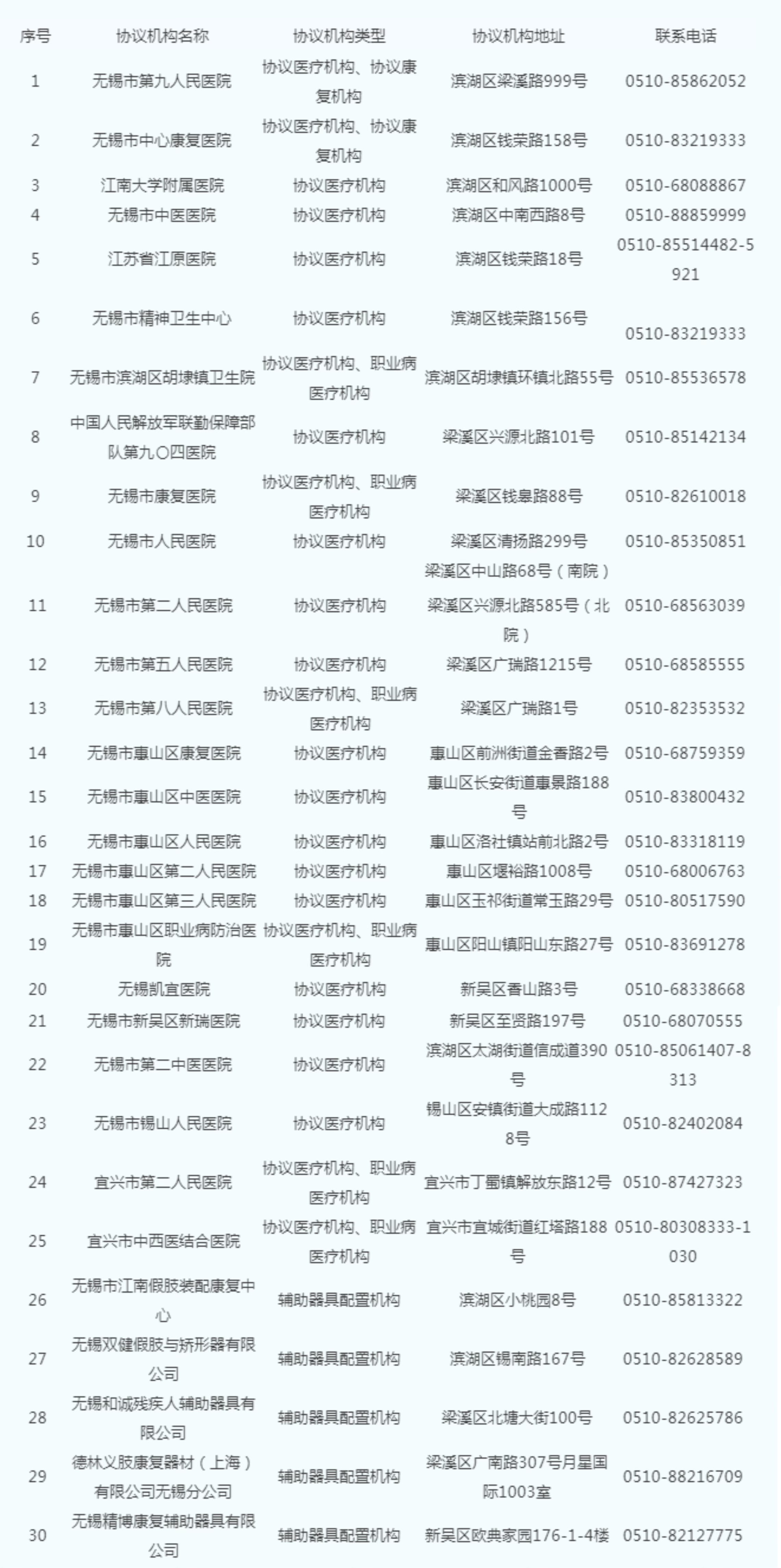 為維護用人單位及工傷職工的合法權益,規范工傷醫療(康復)服務管理,根據《工傷保險條例》《江蘇省工傷保險經辦管理服務規程》《江蘇省工傷保險異地就醫經辦規程》和《無錫市工傷保險醫療管理辦法》等有關規定,無錫人社公布無錫市區2025年工傷保險協議機構名單。