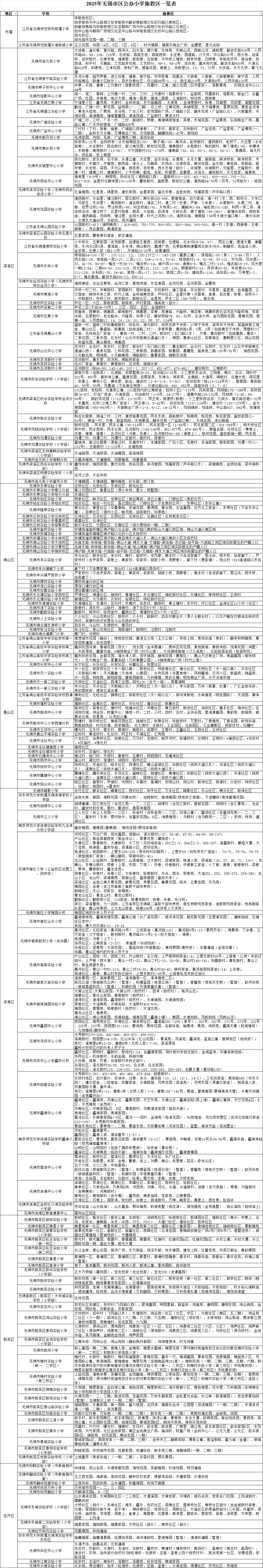 內容概述 2025年無錫市區公辦小學施教區一覽表