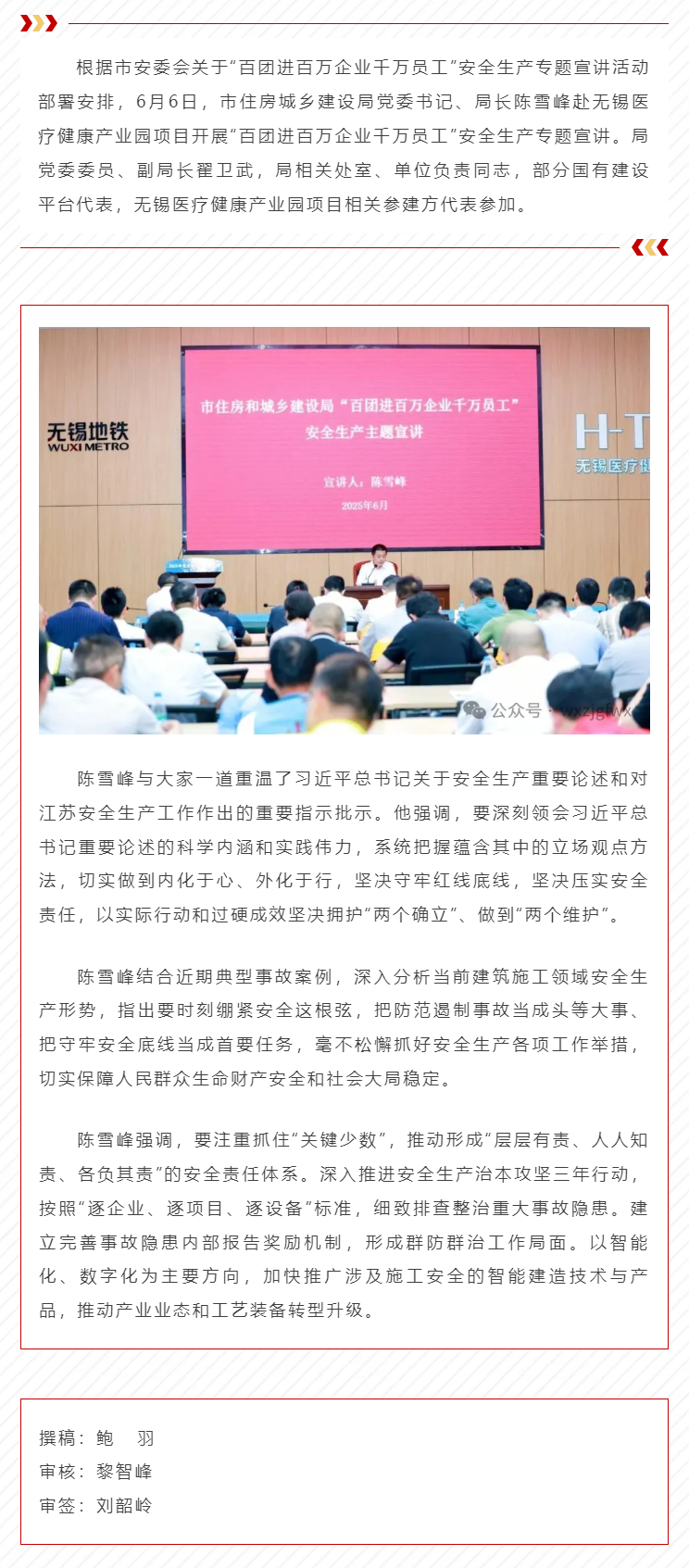 內容概述 陳雪峰到施工項目一線開展安全生產專題宣講