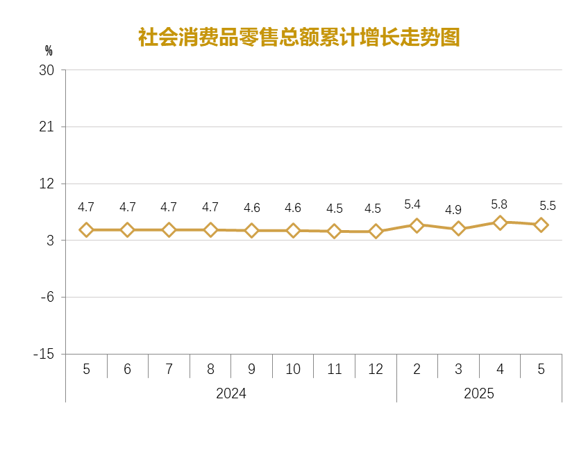 | 內(nèi)容概述 | 2025年1-5月社會消費品零售總額增長5.5% | ||||