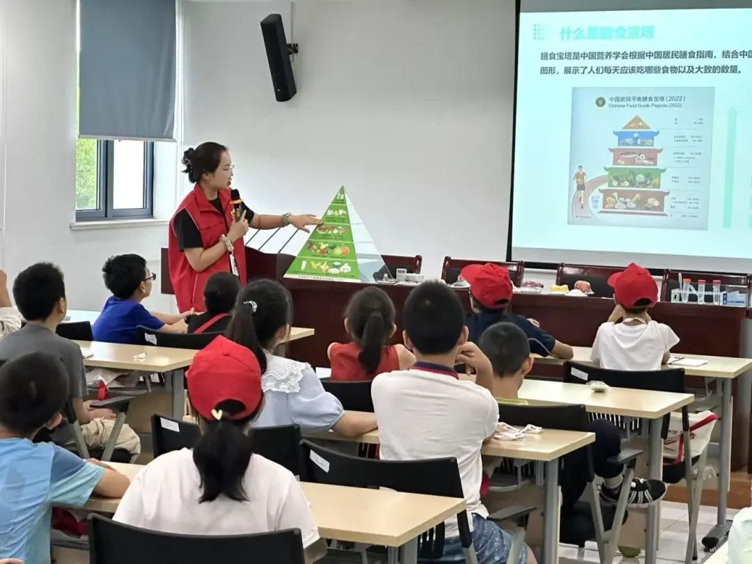 “配料表里的奧秘藏在這里!”中心科普老師通過圖文并茂的PPT,全面解析了食品標簽中各項指標的科學內涵,指導孩子們辨別更健康、更適合自己的產品,孩子們現場比對多款飲料和零食的配料表,在情景化"模擬超市"中實踐生產日期識別、營養成分解讀等實用技能,筑牢食品安全認知基礎。“怎么吃飯才能保證獲得足夠的營養?”在膳食寶塔模型前,中心科普老師用實物指導孩子們自主搭配三餐,營養均衡的理念深植童心。