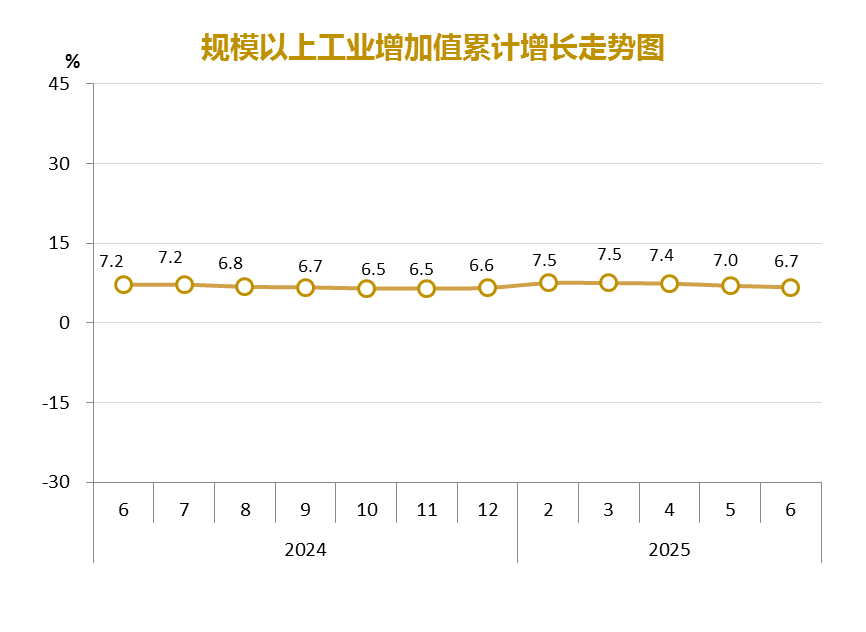 | 內容概述 | 2025年1-6月規模以上工業增加值增長6.7% | ||||