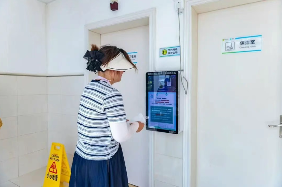步入公園智能公廁,感應式取紙機精準出紙,避免接觸感染的同時杜絕浪費;馬桶區的智能坐墊在每次使用前自動旋轉更新墊膜,配合自動沖洗功能,讓傳統公廁的衛生痛點轉化為服務亮點。洗手臺的溫熱水系統更藏著巧思,水溫隨氣溫智能調節。
