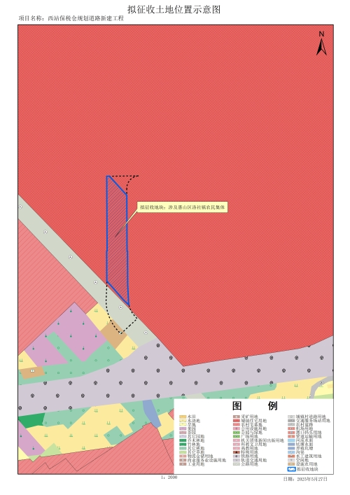 由縣級以上地方人民政府組織實施的成片開發建設需要用地,項目名稱為西站保稅倉規劃道路新建工程。