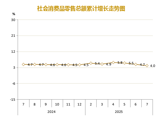 | 內容概述 | 2025年1-7月社會消費品零售總額增長4.0% | ||||