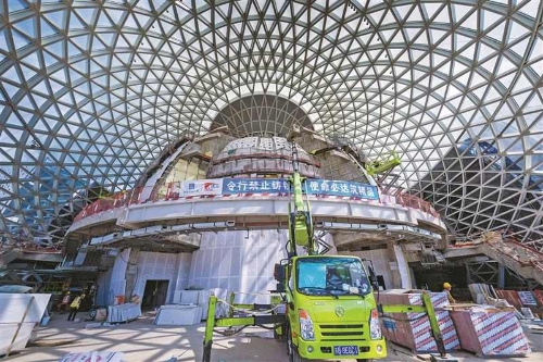 題圖:無錫交響音樂廳備受矚目的“太湖明月”主廳已披上通透的“玻璃外衣”,在陽光下宛如一顆璀璨的明珠,與藍天白云交相輝映。