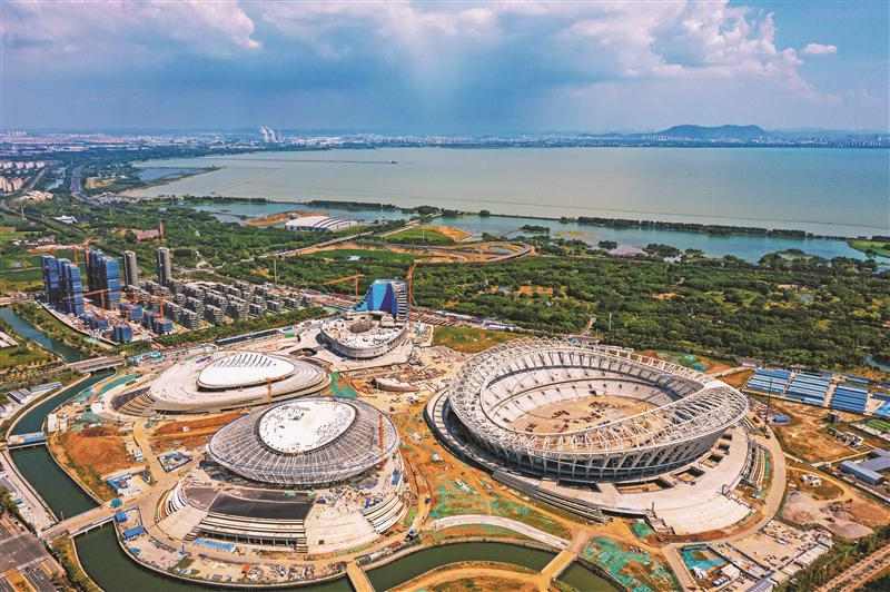 無錫奧體中心體育場環索已就位,體育場整體外觀已清晰可見。