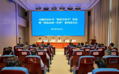 無錫市2025年“政府開放月”活動暨“高效辦成一件事”新聞發布會。邀請人大代表、政協委員、企業代表和市民代表40余人出席,現場發布306場“政府開放月”主題活動內容和無錫市“高效辦成一件事”十大創新場景,并邀請企業代表和市民代表分享“一件事”辦理真實體驗。