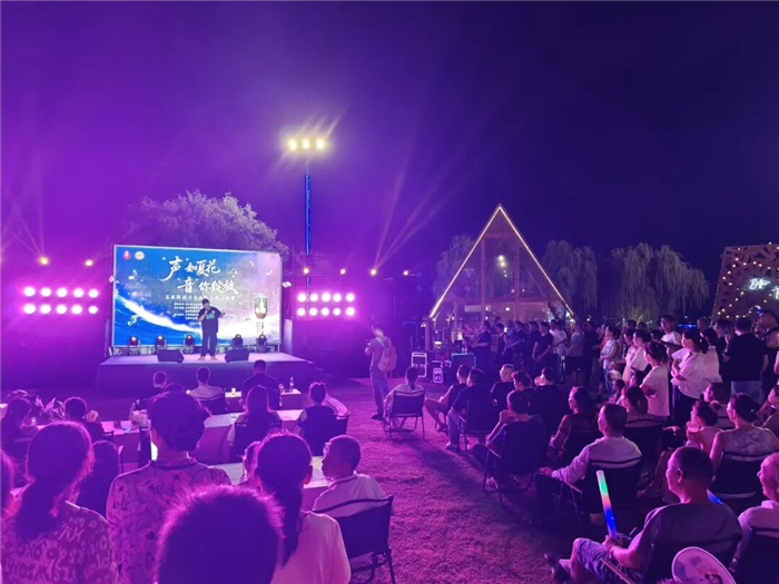9月的一個夜晚,花星球景區內燈火通明,傲燥·蜂鳥音樂節正在這里熱力上演。音樂人高虎及五雷王、3號博物館、古島等12支來自全國各地的優秀樂隊輪番登臺,臺下近千名樂迷隨著節奏盡情搖擺,舞臺燈光穿過夜色,與花星球獨特的自然景觀交相輝映。
