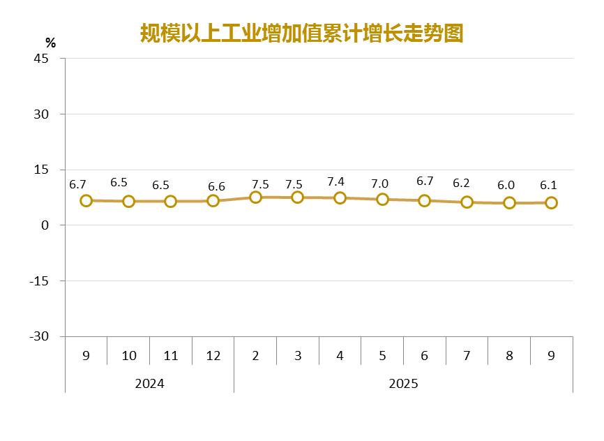 | 內容概述 | 2025年1-9月規(guī)模以上工業(yè)增加值增長6.1% | ||||