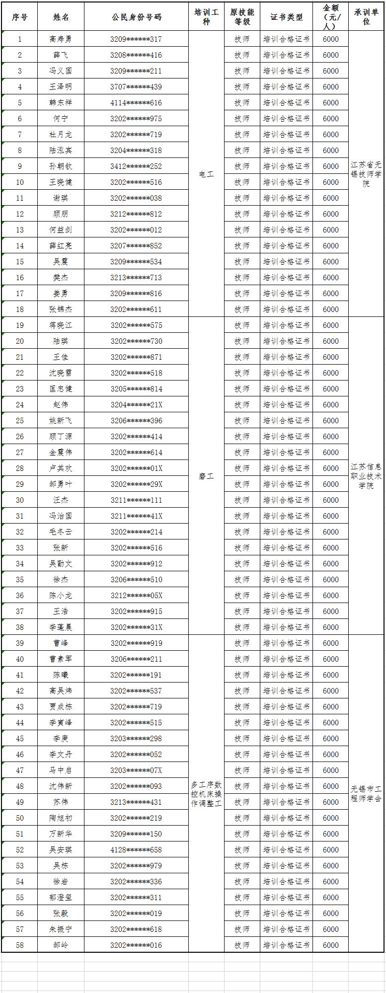 根據(jù)《關(guān)于組織開展2025年度無錫市技師崗位技能提升培訓(xùn)的通知》(錫人社函〔2025〕20號(hào))文件精神,經(jīng)審核,3家承訓(xùn)單位符合無錫市技師崗位技能提升培訓(xùn)補(bǔ)貼條件,現(xiàn)將承訓(xùn)單位及參訓(xùn)學(xué)員名單公示如下: