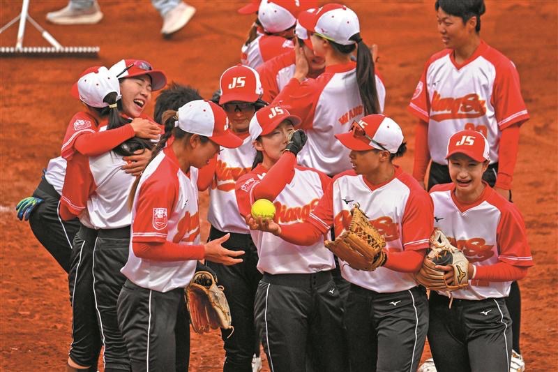11月18日下午,第十五屆全運會壘球比賽迎來巔峰對決。陳佳、奚凱琳、孫悅、王超越、潘孜瑤、季琳無錫“六朵金花”加盟的江蘇隊以4比3力克遼寧隊,成就全運會四連冠。