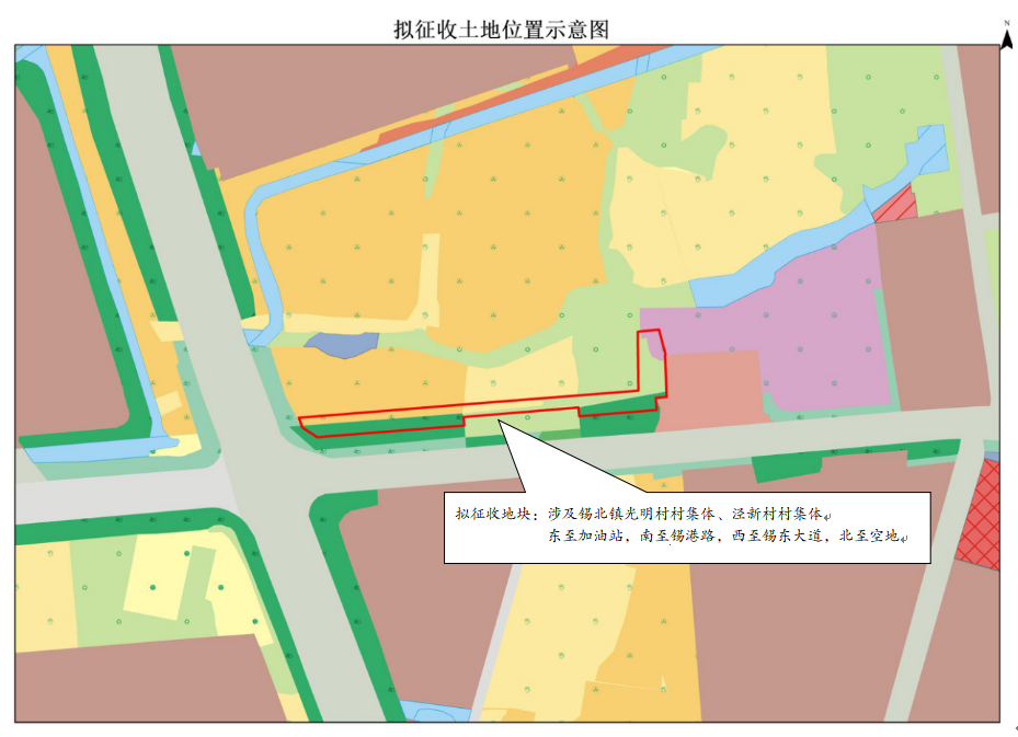 本次擬征收土地位于錫北鎮光明村村集體、涇新村村集體范圍內。擬征收土地位置詳見附圖。