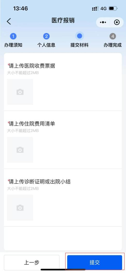 上傳報(bào)銷資料圖片,點(diǎn)擊“提交”即可,申請(qǐng)成功后可在“我要查”模塊選擇“審核結(jié)果查詢”查看審核結(jié)果。