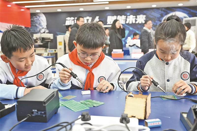 育人場(chǎng)景早已突破了校園圍墻。2023年,全市啟動(dòng)“1+8+X”實(shí)驗(yàn)實(shí)踐基地建設(shè),整合南京大學(xué)、東南大學(xué)、江南大學(xué)等高校資源,建成1個(gè)市級(jí)中心實(shí)驗(yàn)室和線上學(xué)習(xí)中心,打造腦機(jī)接口、生成式AI等體驗(yàn)區(qū);各市(縣)區(qū)協(xié)同建設(shè)8個(gè)區(qū)級(jí)樞紐實(shí)驗(yàn)室,支撐區(qū)域?qū)W生興趣培養(yǎng);全市各中小學(xué)聯(lián)合企業(yè)、科研院所建設(shè)千余個(gè)學(xué)校節(jié)點(diǎn)實(shí)驗(yàn)室,讓“做中學(xué)”處處開花。此外,我市還選聘高新技術(shù)企業(yè)、高校以及科研院所的專家擔(dān)任中小學(xué)人工智能副校長(zhǎng),為人工智能教育注入行業(yè)智慧,“雙師型”教學(xué)讓前沿科技觸手可及。