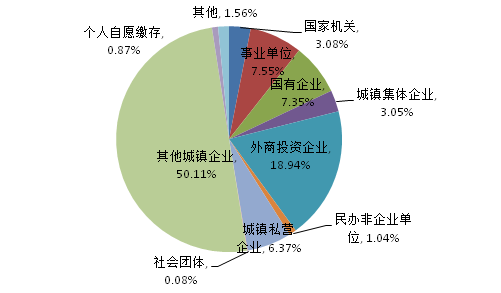 2021年一季度實(shí)繳職工數(shù)按不同性質(zhì)單位分類占比圖
