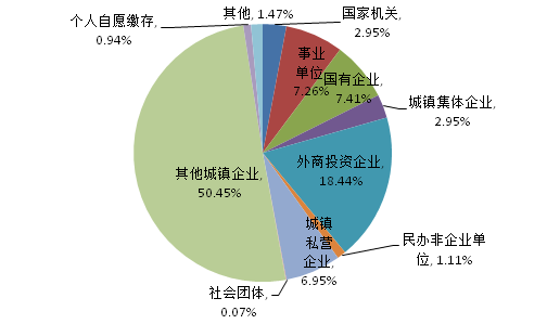 2021年三季度實繳職工數(shù)按不同性質(zhì)單位分類占比圖