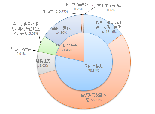 2023年三季度,住房消費類提取金額為46.89億元,環(huán)比下降7.46%,占三季度提取額的78.54%。其中還貸提取占比最高,提取金額33.04億元,占三季度提取額的55.34%。具體提取結(jié)構(gòu)如下: