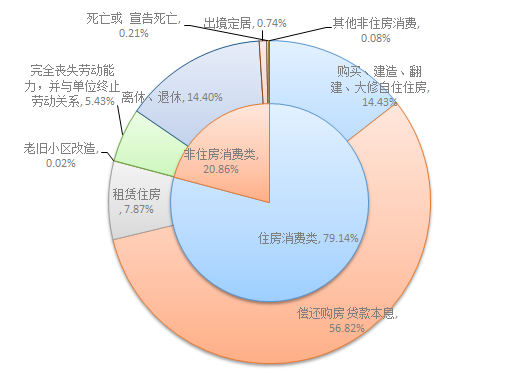2023年四季度,住房消費類提取金額為49.4億元,環比增長5.35%,占當季提取額的79.14%。其中還貸提取占比最高,提取金額35.47億元,占當季提取額的56.82%。具體提取結構如下:
