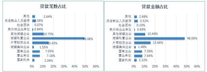 2023年四季度職工貸款筆數及貸款金額按單位性質分類占比圖