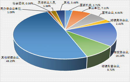 從繳存主體看,以非公群體為主,繳存人數(shù)占當季實繳職工數(shù)的80.86%,其中城鎮(zhèn)私營企業(yè)及其他城鎮(zhèn)企業(yè)職工繳存占比最高。具體繳存結(jié)構(gòu)如下: