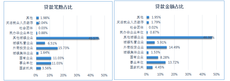 2025年二季度職工貸款筆數及貸款金額按單位性質分類占比圖